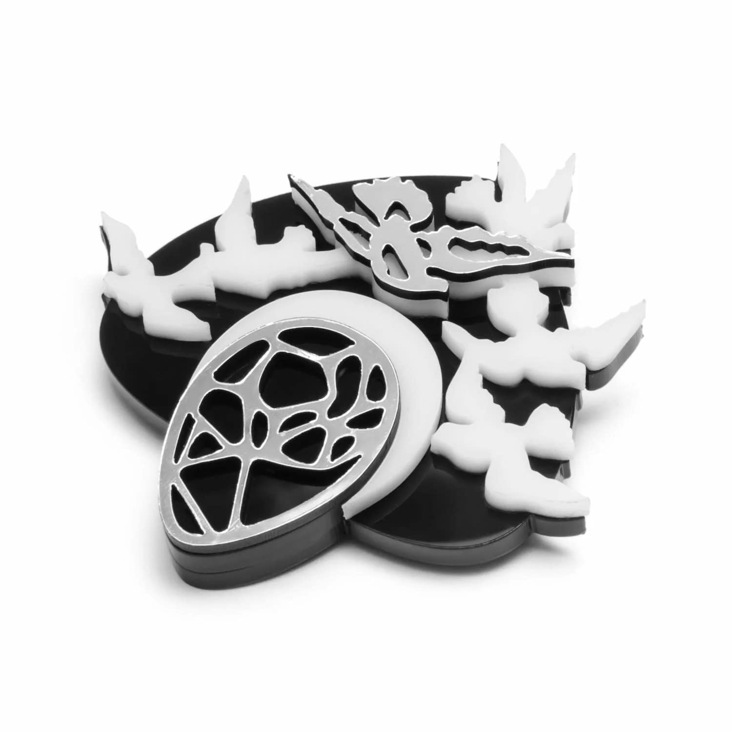 «Мы начали работать с русской темой еще до того, как это стало мейнстримом. Тогда мы придумали коллекцию «Голубушка», она у нас очень детально, подробно проработана: есть персонаж, его история, у каждой броши есть свои имена. Сейчас у нас уже много последователей, но изначально — это наш оригинальный дизайн, который мы создали с нуля. Люди выбирают нас за оригинальность и качество — например, мы используем японскую фурнитуру, покрытие золотом, и на наших изделиях вы не найдете даже миллиметра видимой склейки»