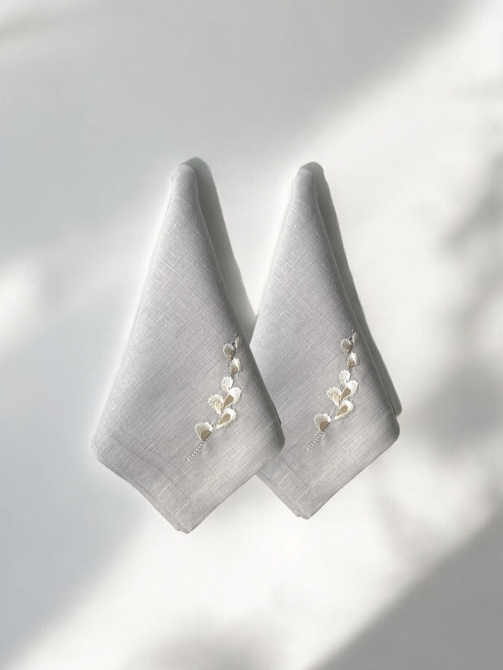 Внимания заслуживают салфетки с цветочной вышивкой. Они выполнены из материалов пастельных оттенков — лавандового, бежевого, светло-салатового — и декорированы маками, крокусами или веточками вербы. К ним можно подобрать дорожку в тон.