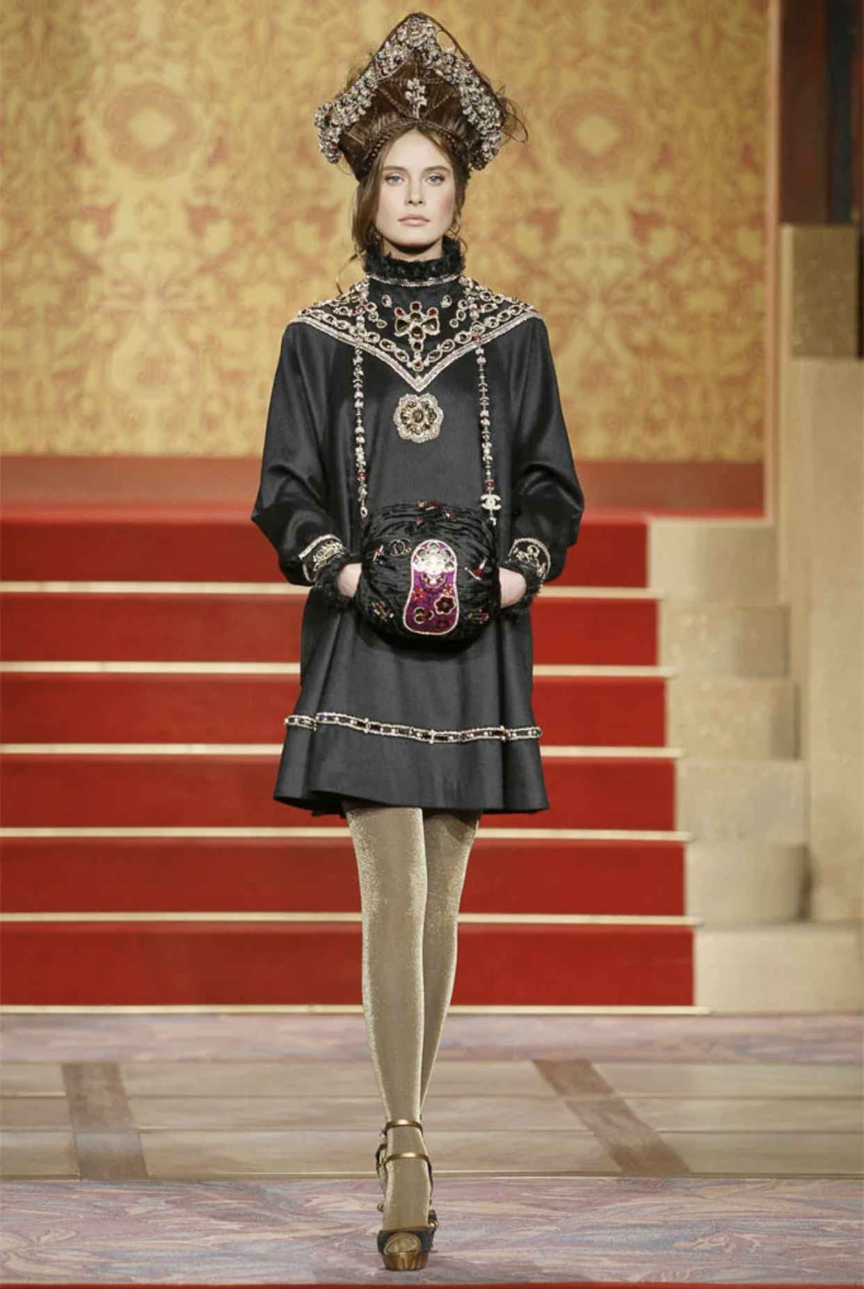 А в 2009 году модный дом Chanel во главе с Карлом Лагерфельдом показал коллекцию «Париж — Москва», в которой были кокошники, обилие меха и ироничные сумки-матрёшки.