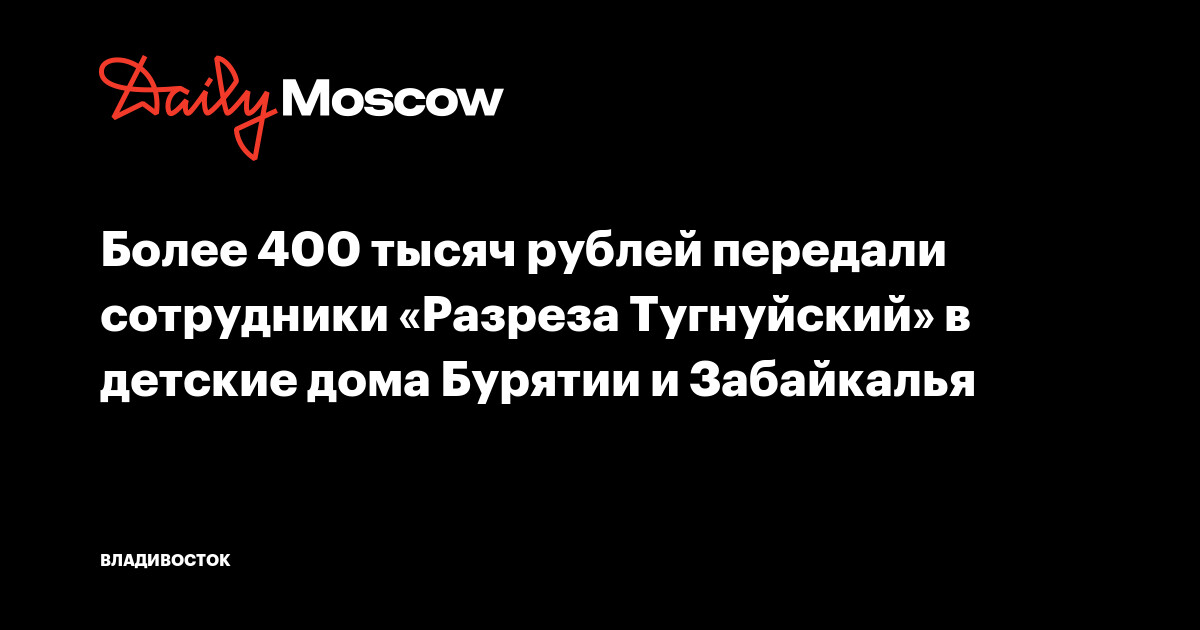 Более 400 тысяч рублей передали сотрудники «Разреза Тугнуйский» в детские дома Бурятии и Забайкалья