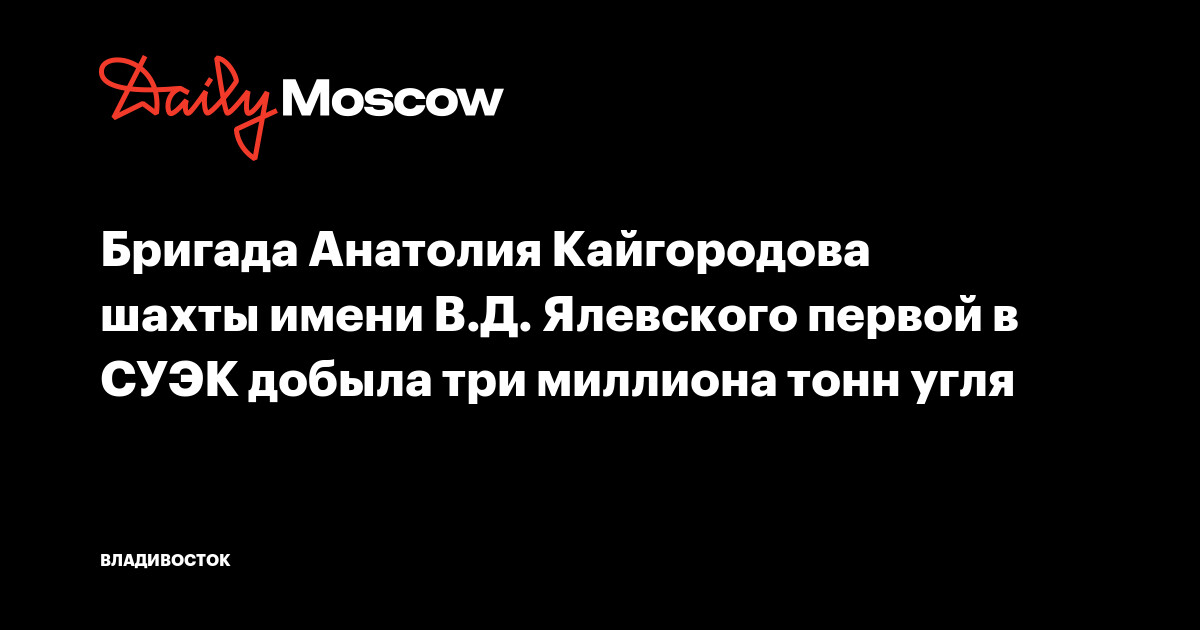 Бригада Анатолия Кайгородова шахты имени В.Д. Ялевского первой в СУЭК добыла три миллиона тонн угля