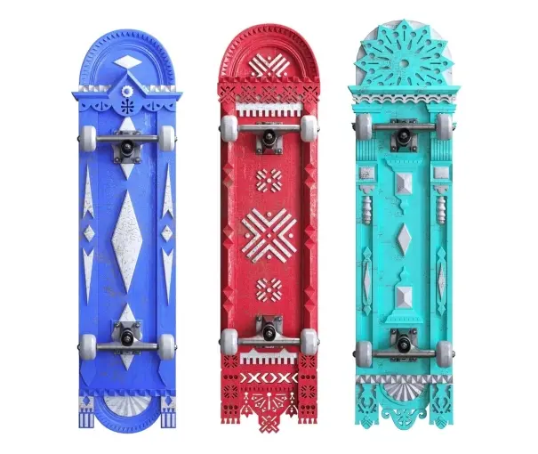 Московский дизайнер Рустам Усманов переработал образы культурного наследия и создал уникальные скейтборды в этническом стиле.
