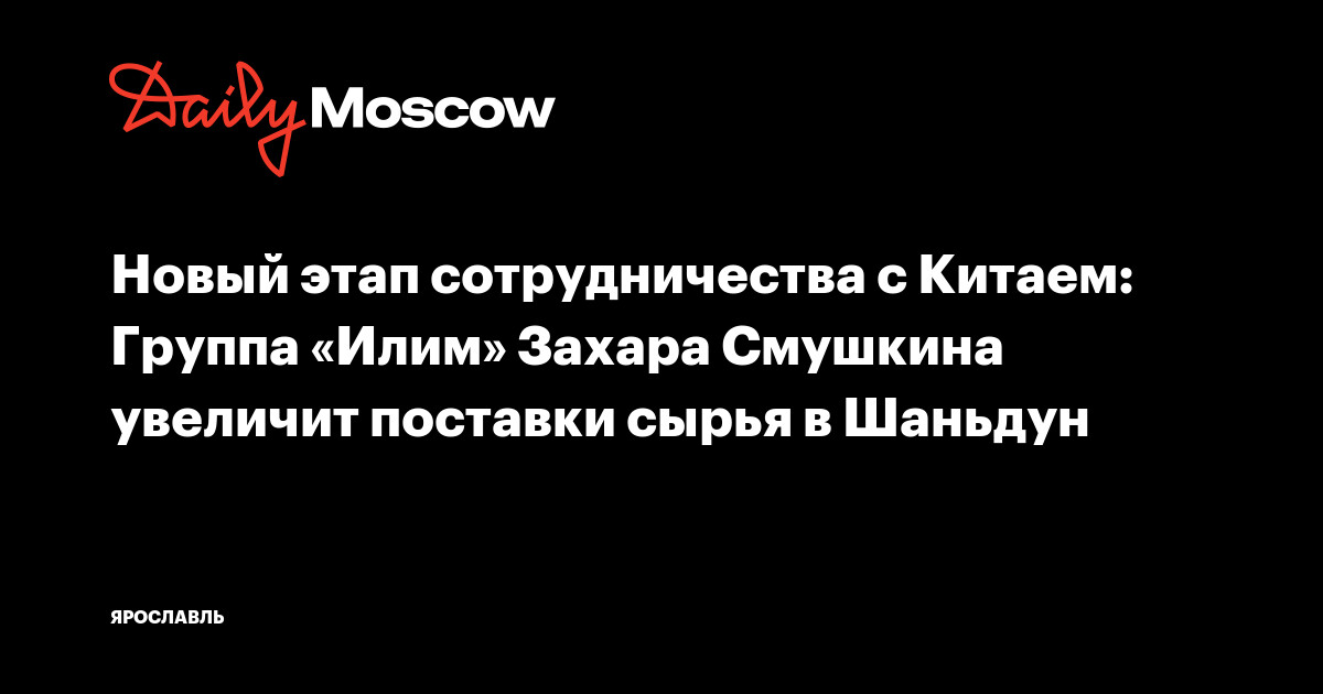 Новый этап сотрудничества с Китаем: Группа «Илим» Захара Смушкина увеличит поставки сырья в Шаньдун